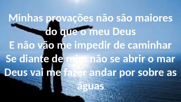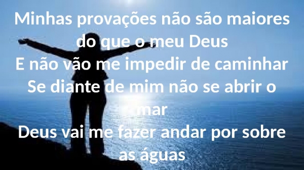 - Minhas provações não são maiores do que o meu DeusE não vão me impedir de caminharSe diante de mim não se abrir o marDeus vai me fazer andar por sobre as águas