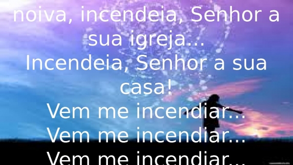 - Incendia, Senhor a sua noiva, incendeia Senhor a sua igreja...Incendeia, senhor a sua casa!Vem me incendiar...Vem me incendiar...Vem me incendiar...