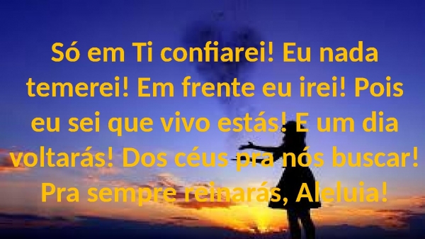 - Só em Ti confiarei! Eu nada temerei! Em frente eu irei! Pois eu sei que vivo estás! E um dia voltarás! Dos céus pra nós buscar!Pra sempre reinarás, Aleluia!