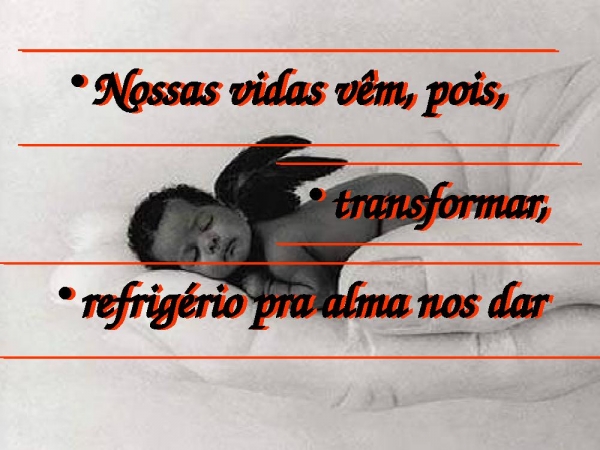 - Nossas vidas vêm, pois,transformar,refrigério pra alma nos dar