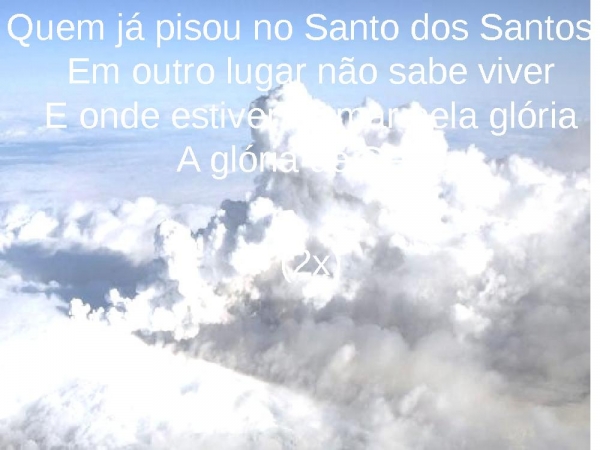- Quem já pisou no Santo dos SantosEm outro lugar não sabe viverE onde estiver clamar pela glóriaA glória de Deus(2x)
