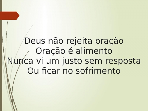 - Deus não rejeita oraçãoOração é alimentoNunca vi um justo sem respostaOu ficar no sofrimento