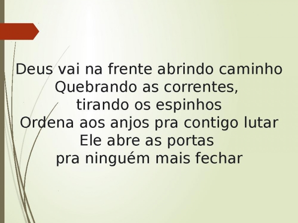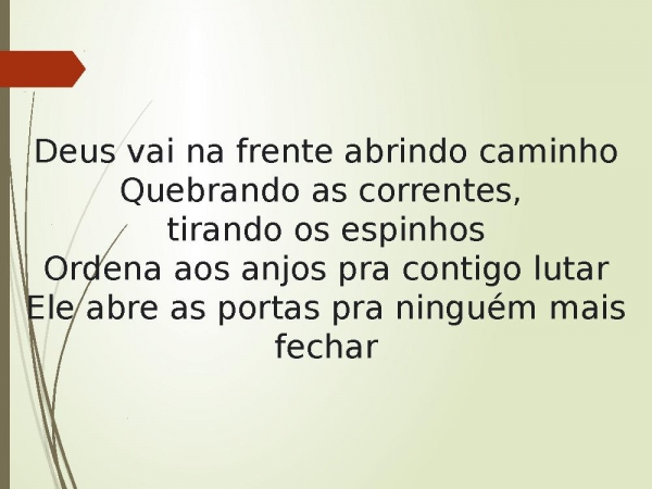 - Deus vai na frente abrindo caminhoQuebrando as correntes, tirando os espinhosOrdena aos anjos pra contigo lutarEle abre as portas pra ninguém mais fechar