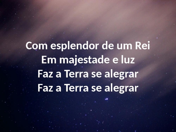 - Com esplendor de um ReiEm majestade e luzFaz a Terra se alegrarFaz a Terra se alegrar