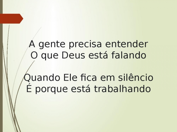 - A gente precisa entenderO que Deus está falandoQuando Ele fica em silêncioÉ porque está trabalhando