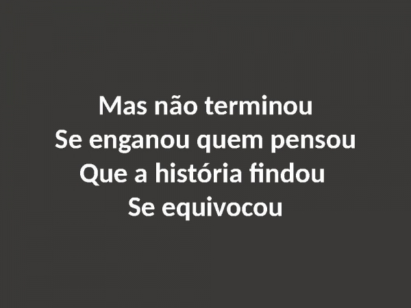 - Mas não terminouSe enganou quem pensouQue a história findou Se equivocou