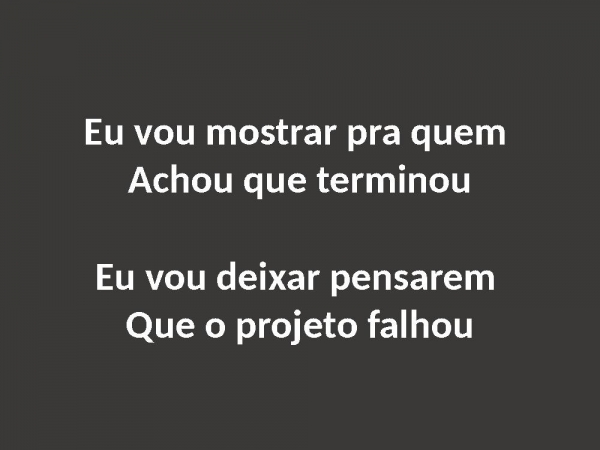 - Eu vou mostrar pra quem Achou que terminouEu vou deixar pensarem Que o projeto falhou