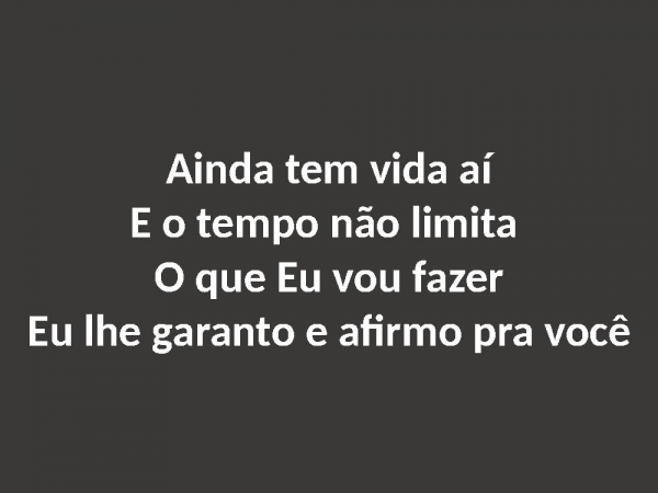 - Ainda tem vida aíE o tempo não limita O que Eu vou fazerEu lhe garanto e afirmo pra você