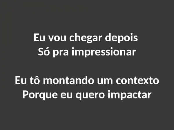 - Eu vou chegar depois Só pra impressionarEu tô montando um contextoPorque eu quero impactar