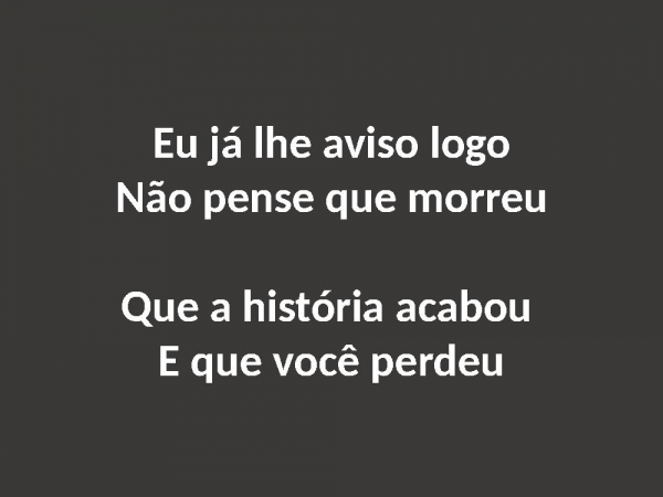 - Eu já lhe aviso logoNão pense que morreuQue a história acabou E que você perdeu