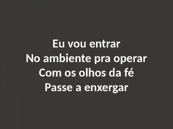 - Eu vou entrarNo ambiente pra operarCom os olhos da féPasse a enxergar