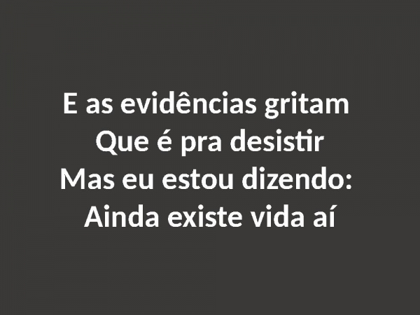 - E as evidências gritam Que é pra desistirMas eu estou dizendo: Ainda existe vida aí