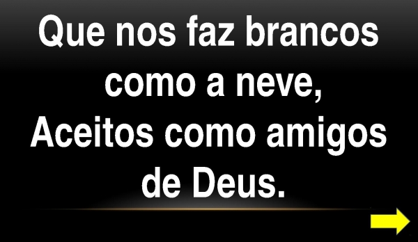 - Que nos faz brancos como a neve,Aceitos como amigos de Deus.