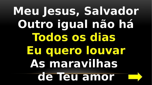- Meu Jesus, SalvadorOutro igual não háTodos os dias Eu quero louvarAs maravilhas de Teu amor