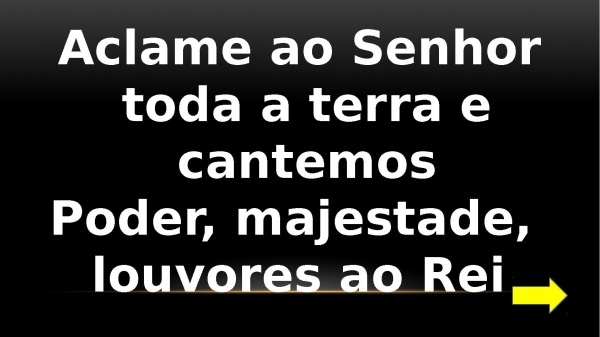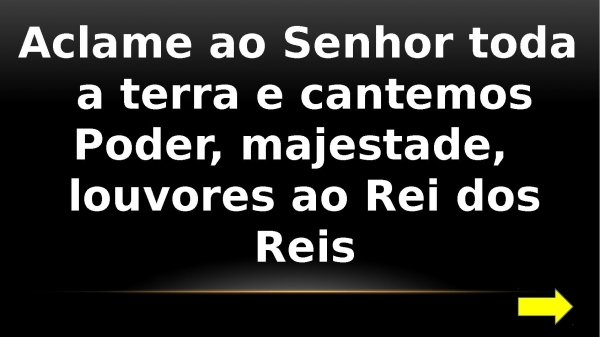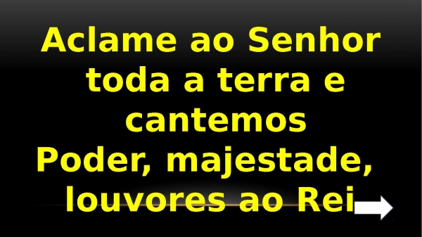 - Aclame ao Senhor toda a terra e cantemosPoder, majestade, louvores ao Rei dos Reis