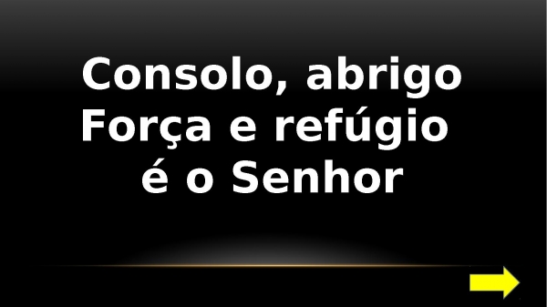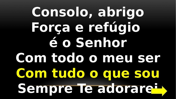 - Consolo, abrigoForça e refúgio é o SenhorCom todo o meu serCom tudo o que souSempre Te adorarei