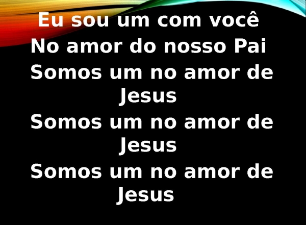 - Eu sou um com você No amor do nosso Pai Somos um no amor de Jesus Somos um no amor de Jesus Somos um no amor de Jesus
