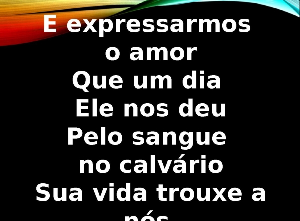 - E expressarmos o amorQue um dia Ele nos deuPelo sangue no calvárioSua vida trouxe a nós.