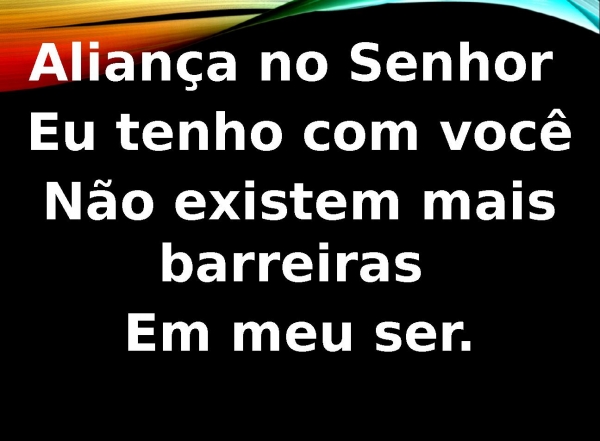 - Aliança no Senhor Eu tenho com você Não existem mais barreiras Em meu ser.