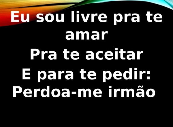 - Eu sou livre pra te amarPra te aceitarE para te pedir: Perdoa-me irmão