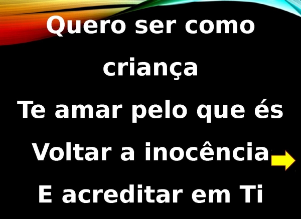 - Quero ser como criançaTe amar pelo que ésVoltar a inocênciaE acreditar em Ti