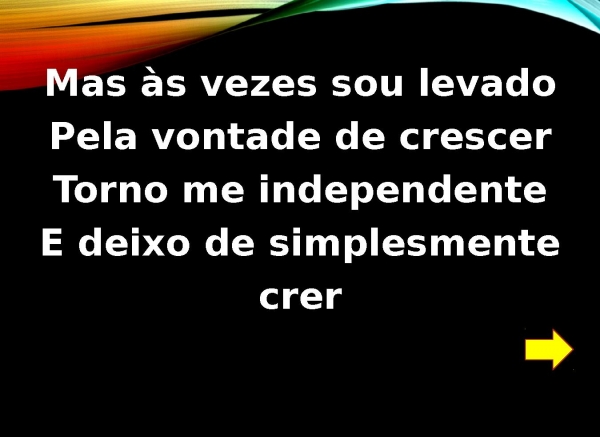 - Mas às vezes sou levadoPela vontade de crescerTorno me independenteE deixo de simplesmente crer