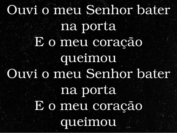 - Ouvi o meu Senhor bater na portaE o meu coração queimouOuvi o meu Senhor bater na portaE o meu coração queimou
