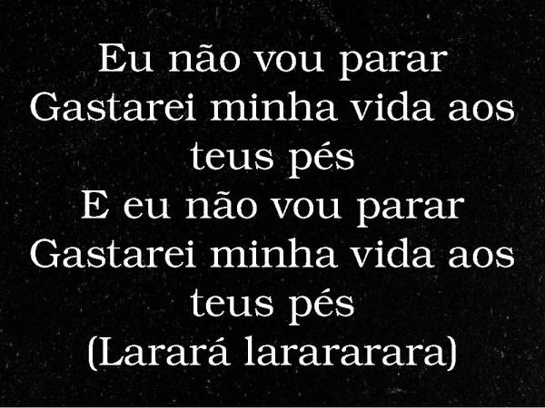 - Eu não vou pararGastarei minha vida aos teus pésE eu não vou pararGastarei minha vida aos teus pés(Larará larararara)