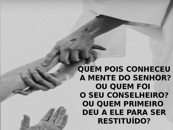 - QUEM POIS CONHECEU A MENTE DO SENHOR?OU QUEM FOI O SEU CONSELHEIRO?OU QUEM PRIMEIRO DEU A ELE PARA SER RESTITUÍDO?