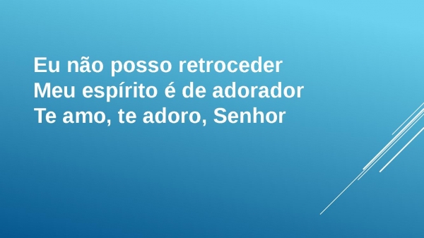 - Eu não posso retrocederMeu espírito é de adoradorTe amo, te adoro, Senhor