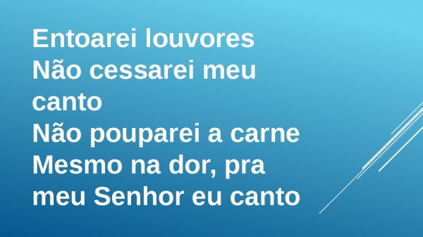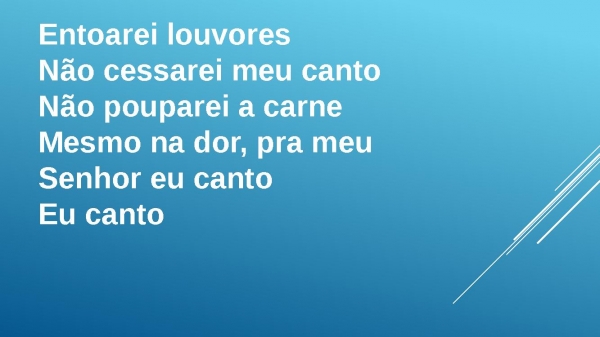 - Entoarei louvoresNão cessarei meu cantoNão pouparei a carneMesmo na dor, pra meu Senhor eu canto