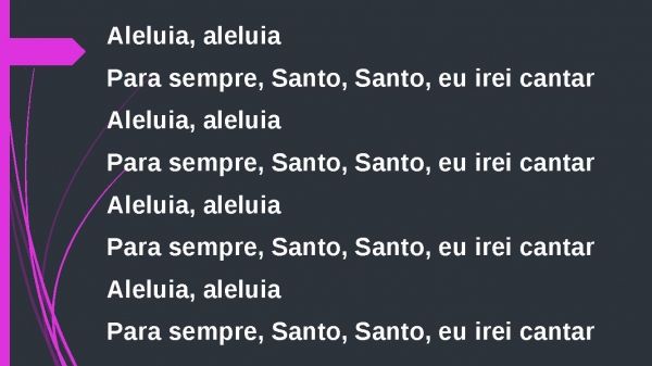 - Aleluia, aleluiaPara sempre, Santo, Santo, eu irei cantarAleluia, aleluiaPara sempre, Santo, Santo, eu irei cantarAleluia, aleluiaPara sempre, Santo, Santo, eu irei cantarAleluia, aleluiaPara sempre, Santo, Santo, eu irei cantar