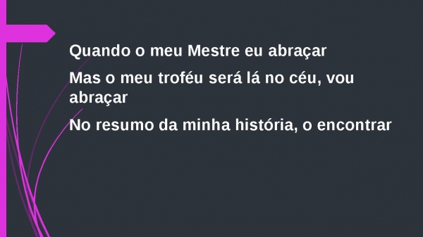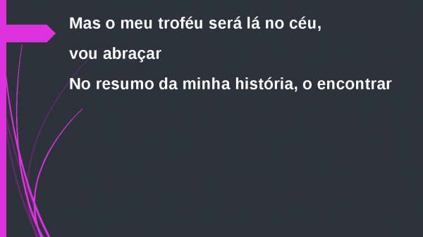 - Mas o meu troféu será lá no céu, vou abraçarNo resumo da minha história, o encontrar