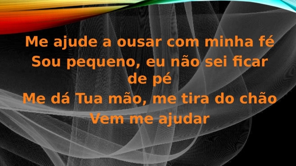- Me ajude a ousar com minha féSou pequeno, eu não sei ficar de péMe dá Tua mão, me tira do chãoVem me ajudar