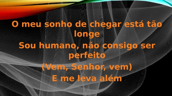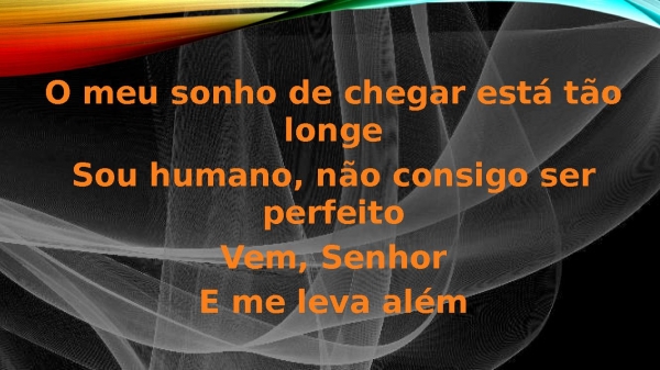 - O meu sonho de chegar está tão longeSou humano, não consigo ser perfeito(Vem, Senhor, vem)E me leva além