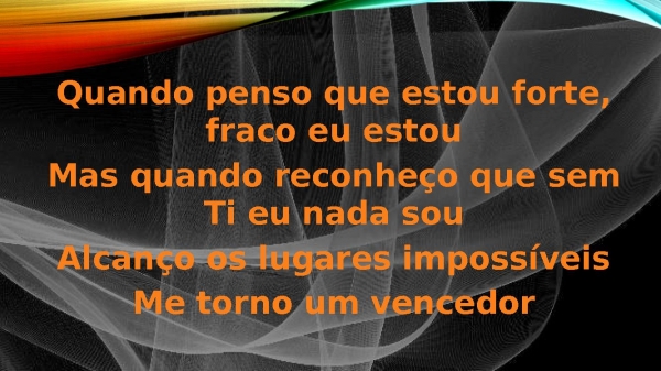 - Quando penso que estou forte, fraco eu estouMas quando reconheço que sem Ti eu nada souAlcanço os lugares impossíveisMe torno um vencedor
