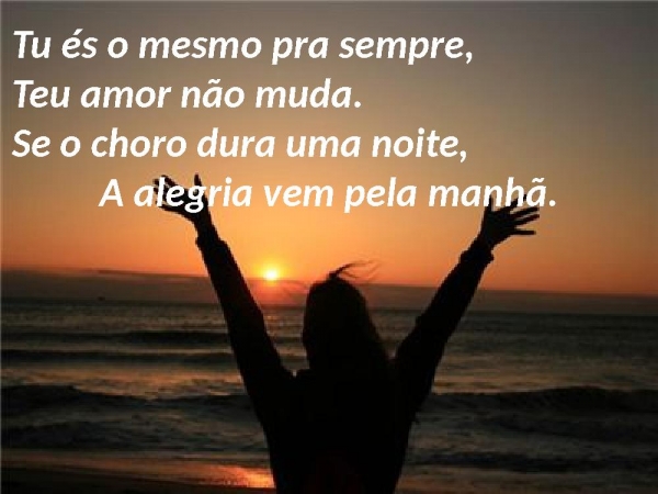 - Tu és o mesmo pra sempre, Teu amor não muda. Se o choro dura uma noite, A alegria vem pela manhã.
