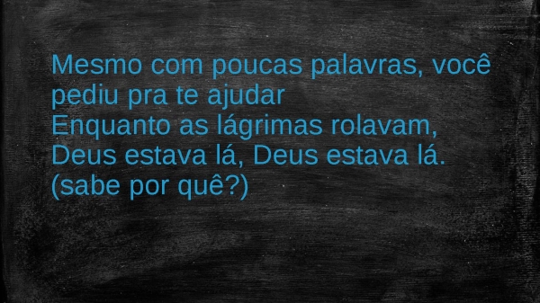 - Mesmo com poucas palavras, você pediu pra te ajudarEnquanto as lágrimas rolavam, Deus estava lá, Deus estava lá. (sabe por quê?)