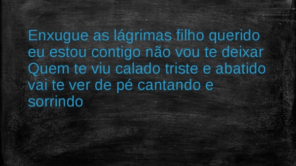 - Enxugue as lágrimas filho querido eu estou contigo não vou te deixarQuem te viu calado triste e abatido vai te ver de pé cantando e sorrindo