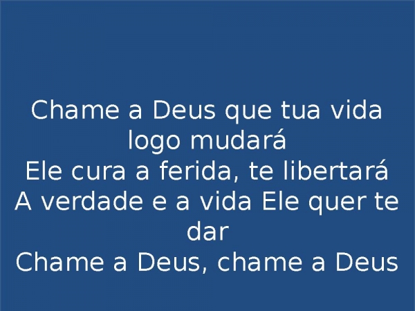 - Chame a Deus que tua vida logo mudaráEle cura a ferida, te libertaráA verdade e a vida Ele quer te darChame a Deus, chame a Deus
