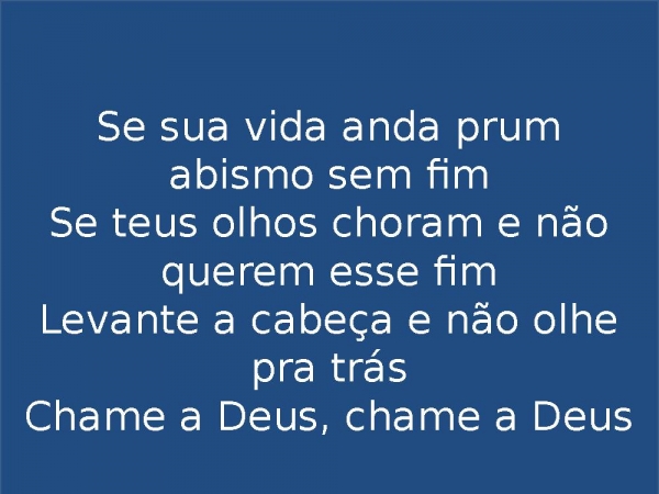 - Se sua vida anda prum abismo sem fimSe teus olhos choram e não querem esse fimLevante a cabeça e não olhe pra trásChame a Deus, chame a Deus