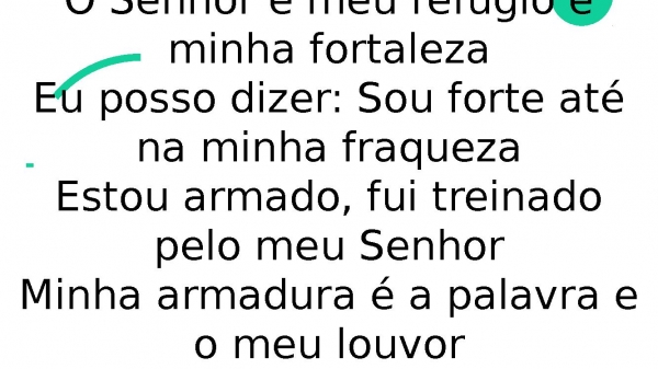 - O Senhor é meu refúgio e minha fortalezaEu posso dizer: Sou forte até na minha fraquezaEstou armado, fui treinado pelo meu SenhorMinha armadura é a palavra e o meu louvor