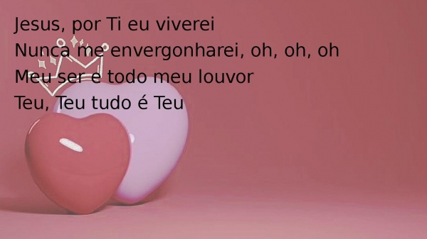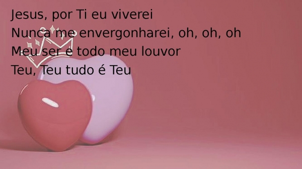 - Jesus, por Ti eu vivereiNunca me envergonharei, oh, oh, ohMeu ser e todo meu louvorTeu, Teu tudo é Teu