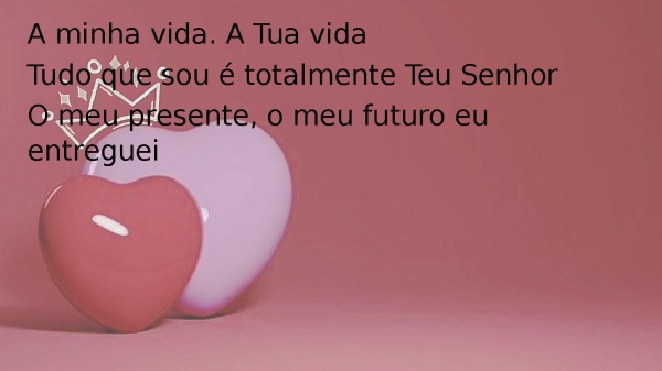 - A minha vida. A Tua vidaTudo que sou é totalmente Teu SenhorO meu presente, o meu futuro eu entreguei