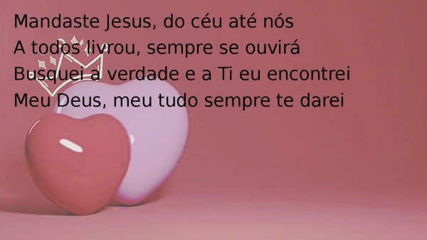 - Mandaste Jesus, do céu até nósA todos livrou, sempre se ouviráBusquei a verdade e a Ti eu encontreiMeu Deus, meu tudo sempre te darei