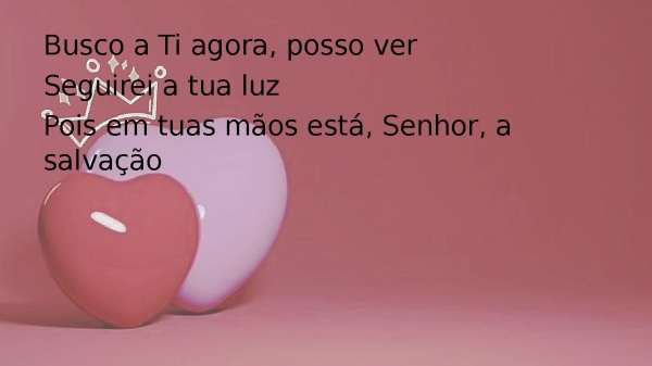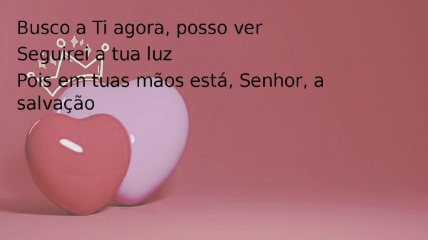 - Busco a Ti agora, posso verSeguirei a tua luzPois em tuas mãos está, Senhor, a salvação
