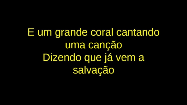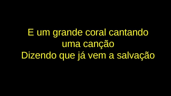 - E um grande coral cantando uma cançãoDizendo que já vem a salvação