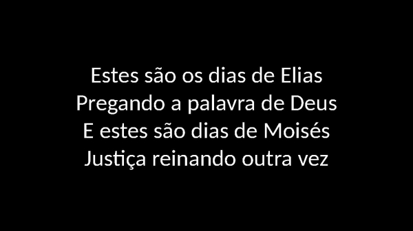 - Estes são os dias de EliasPregando a palavra de DeusE estes são dias de MoisésJustiça reinando outra vez