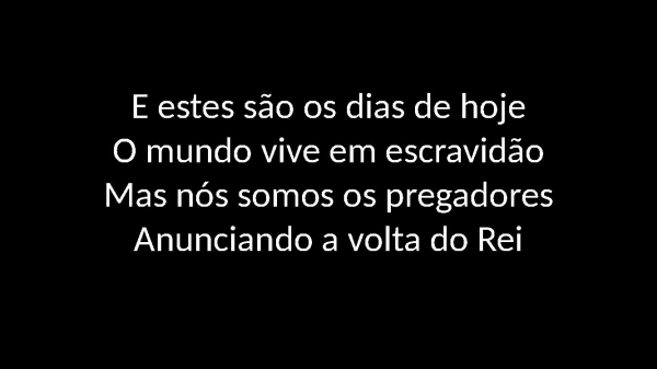 - E estes são os dias de hojeO mundo vive em escravidãoMas nós somos os pregadoresAnunciando a volta do Rei