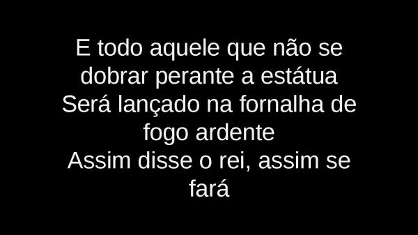 - Não necessitamos responder-te, ó reiO Deus do céu é quem pode nos livrarE, senão, fica sabendo, ó reiNão serviremos aos teus deusesNem vamos nos prostrar